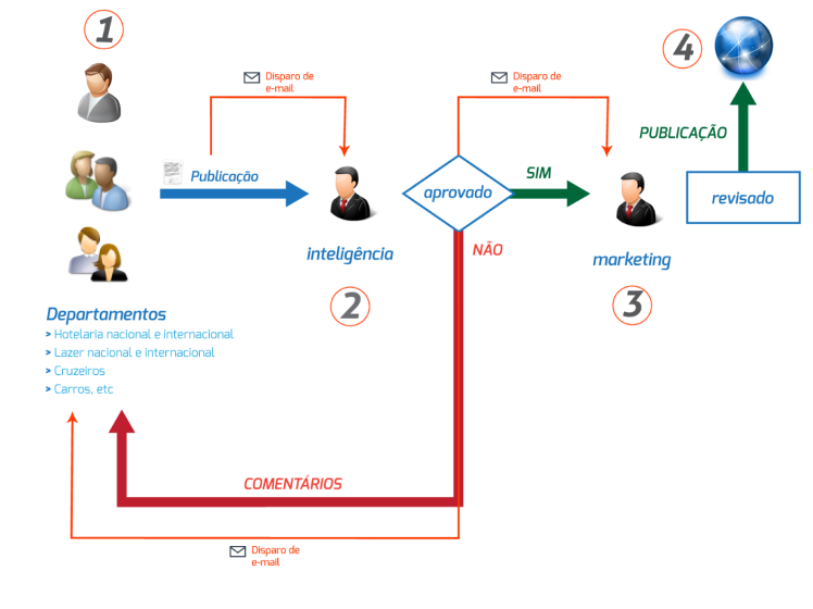 Workflow atual de publicação de ofertas no portal institucional com integração de departamentos