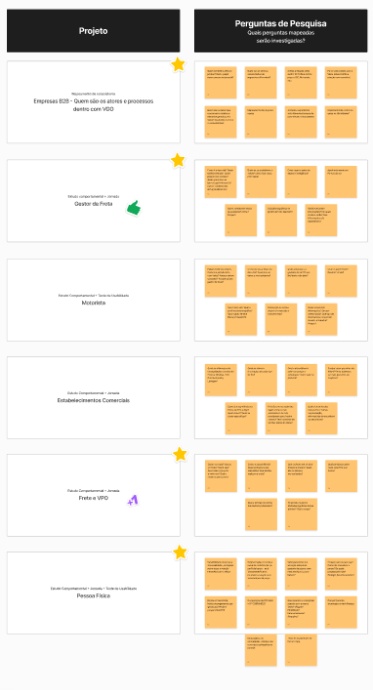 Foram clusterizadas as dúvidas e perguntas de pesquisa a serem resolvidas especificamente para cada grupo de usuários (Matriz CSD), de forma a facilitar a visualização.