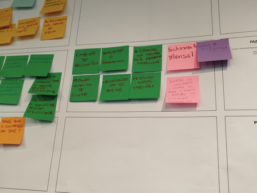 Seção de workshop do desenho de mapa de jornada de usuários.